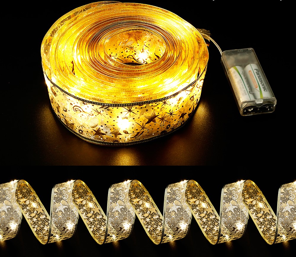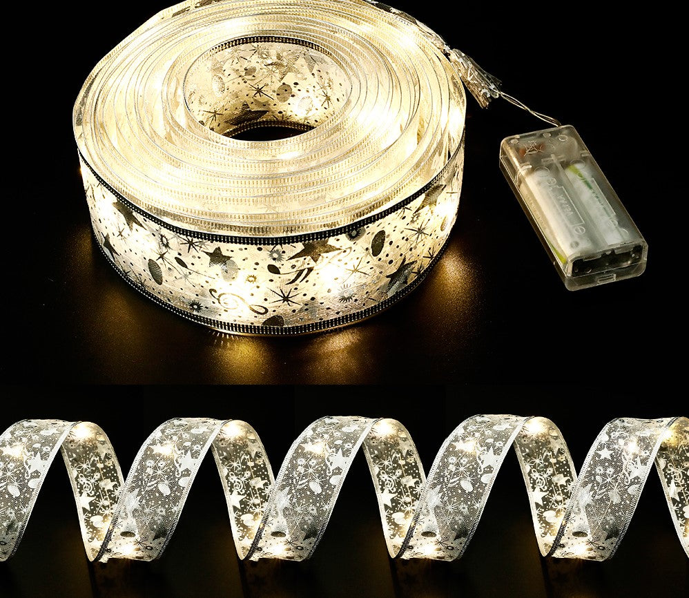 Add a touch of enchantment to your holiday décor with our Illuminated Christmas Tree Ribbon. Choose either gold or silver to go to create a whimsical and magical ambiance for this your Christmas tree, gifts, and more.